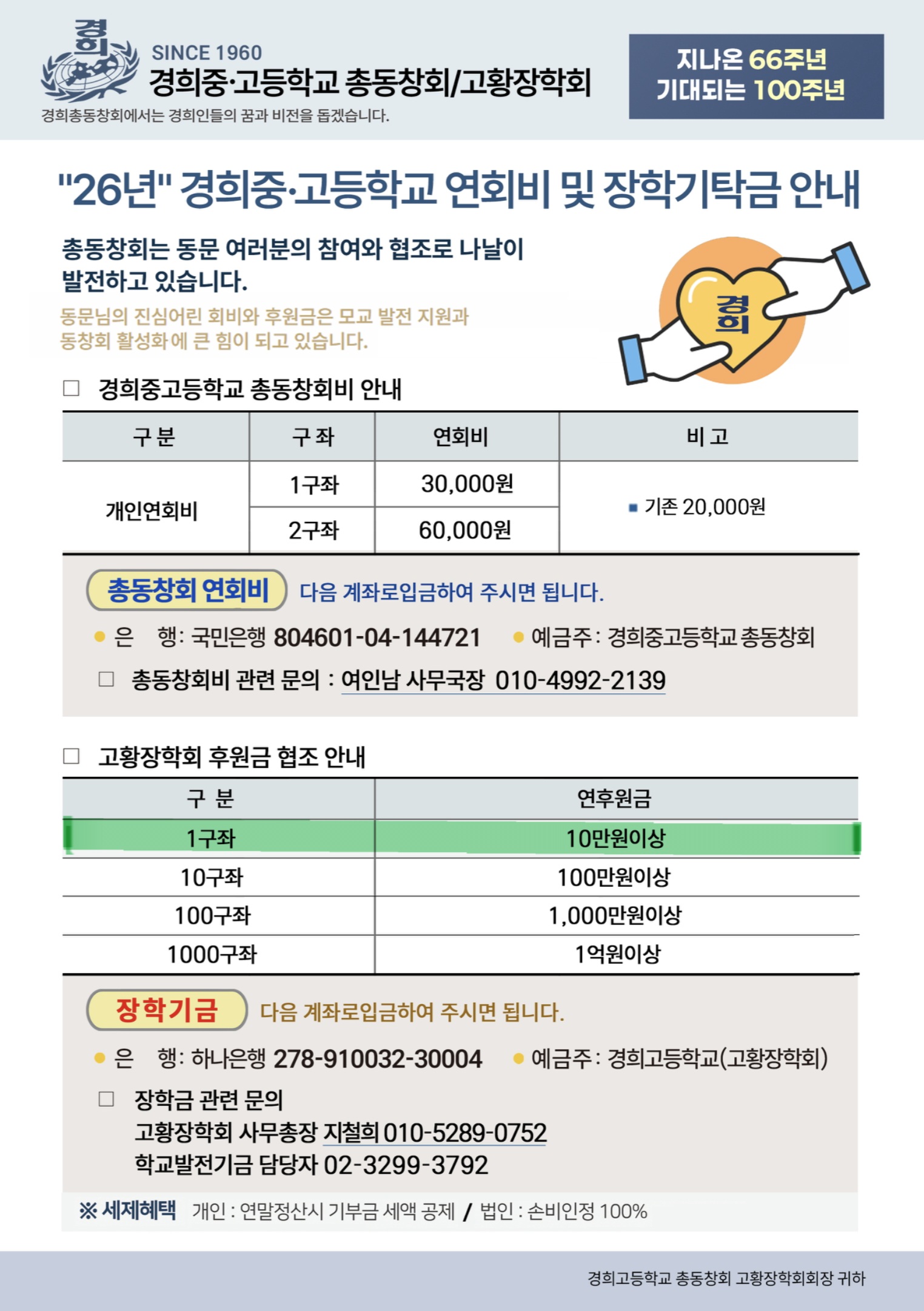 #고경회(고려대-경희고) 모임 26년 특별후원금 200만원 전달